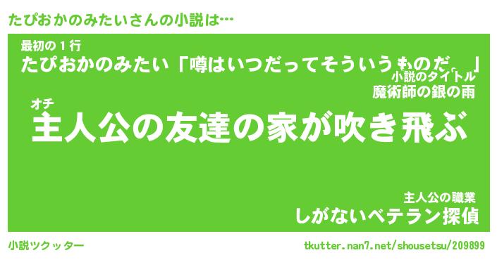 | 魚たちの銀の雨WW …「ケモノ」 | 10月27日 05:47 |