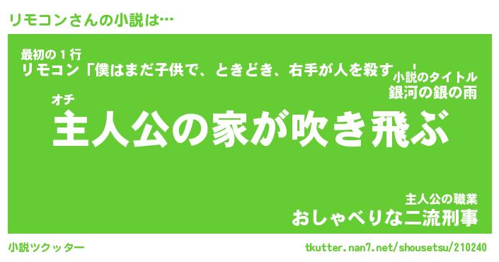 | 魚たちの銀の雨WW …「ケモノ」 | 10月27日 05:47 |