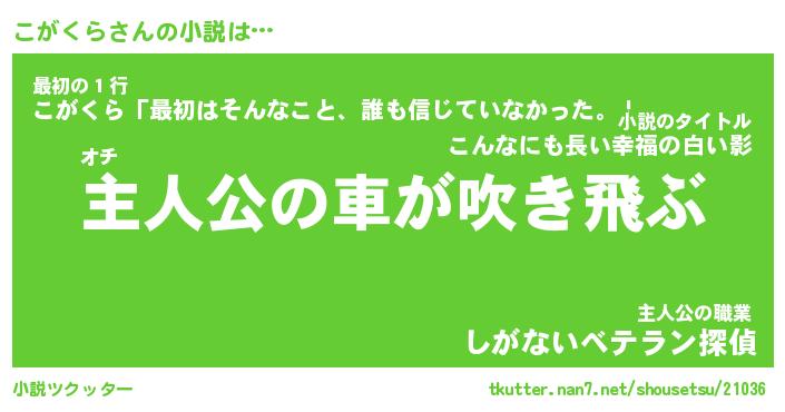 | 男性向けラノベタイトル風あだ名 | 『こがくらの憂鬱』 |