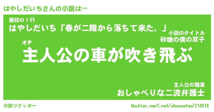 | 男性向けラノベタイトル風あだ名 | 『はやしだいちの憂鬱』 |