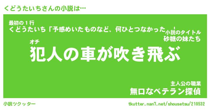 | 胡散臭い通販商品みたいなあだ名 | 『億万長者になれるブレスレット…その名も「くどうたいち」』 |