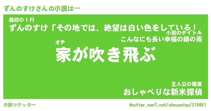 | 男性向けラノベタイトル風あだ名 | 『ずんのすけの憂鬱』 |