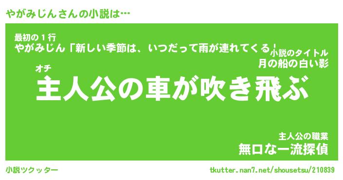 | 男性向けラノベタイトル風あだ名 | 『やがみじんの憂鬱』 |