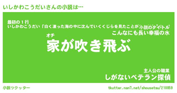 | 男性向けラノベタイトル風あだ名 | 『いしかわこうだいの憂鬱』 |