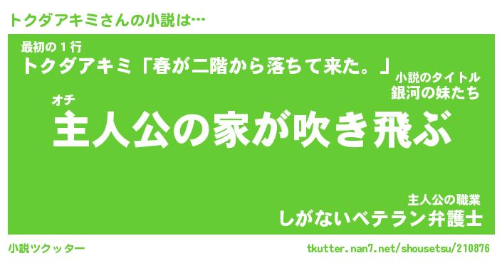 | 男性向けラノベタイトル風あだ名 | 『トクダアキミの憂鬱』 |