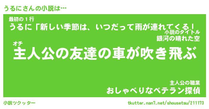 | 魚たちの銀の雨WW …「ケモノ」 | 10月27日 05:47 |