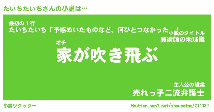 | 男性向けラノベタイトル風あだ名 | 『たいちたいちの憂鬱』 |