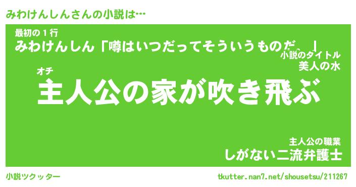 | 男性向けラノベタイトル風あだ名 | 『みわけんしんの憂鬱』 |