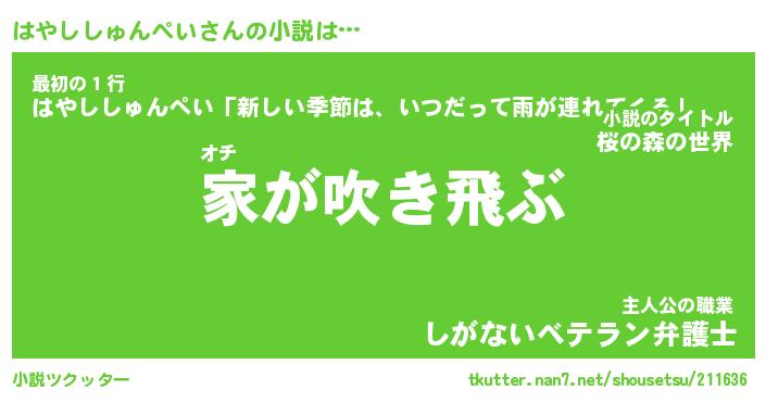 | 男性向けラノベタイトル風あだ名 | 『はやししゅんぺいの憂鬱』 |