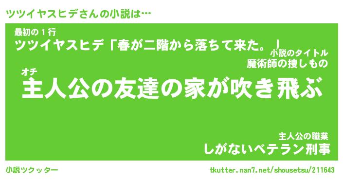 | 胡散臭い通販商品みたいなあだ名 | 『モテモテ間違いなしブレスレット…その名も「ツツイヤスヒデ」』 |