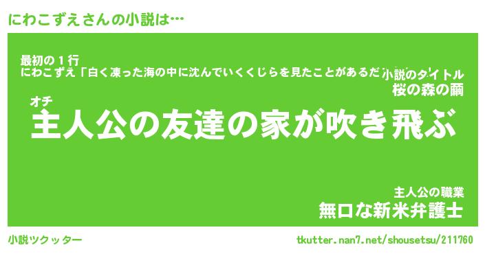 | 男性向けラノベタイトル風あだ名 | 『にわこずえの憂鬱』 |