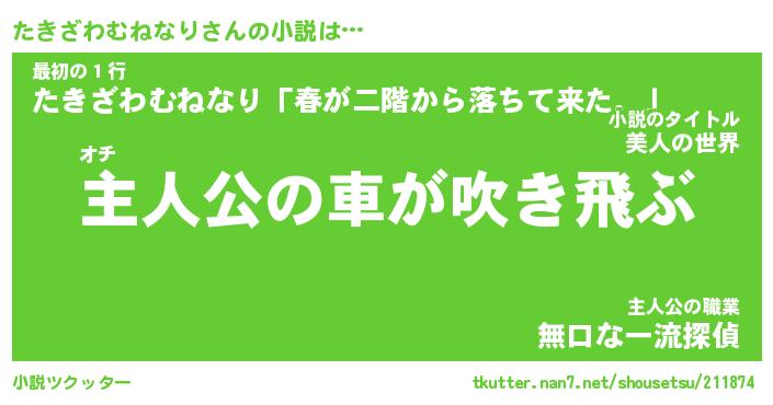 | 女子向けラノベタイトル風あだ名 | 『(仮)たきざわむねなりのやんごとなき事情』 |