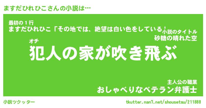 | 男性向けラノベタイトル風あだ名 | 『マスダヒレヒコアートオンライン』 |