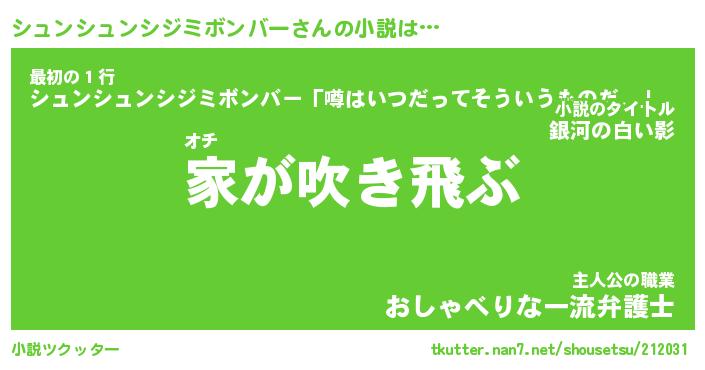 | 胡散臭い通販商品みたいなあだ名 | 『必ず成功する霊験あらたかなお札…その名も「シュンシュンシジミボンバー」』 |