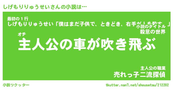 | 男性向けラノベタイトル風あだ名 | 『しげもりりゅうせいの憂鬱』 |