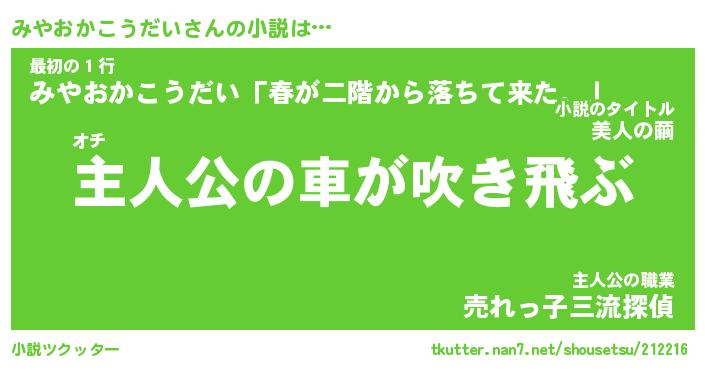| 胡散臭い通販商品みたいなあだ名 | 『モテモテ間違いなし霊験あらたかなお札…その名も「みやおかこうだい」』 |