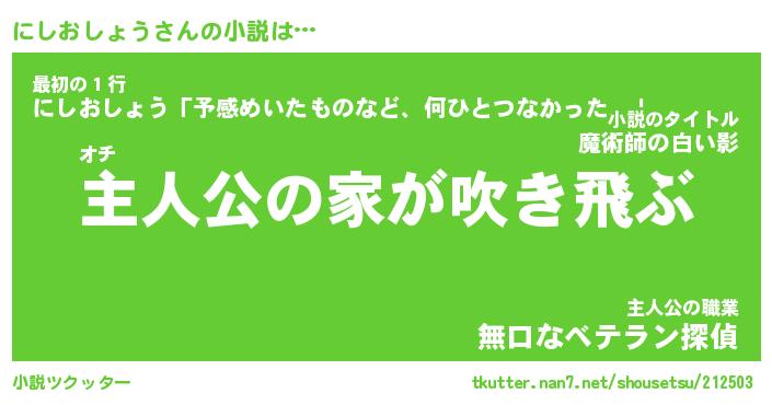 | 胡散臭い通販商品みたいなあだ名 | 『必ず成功するブレスレット…その名も「にしおしょう」』 |