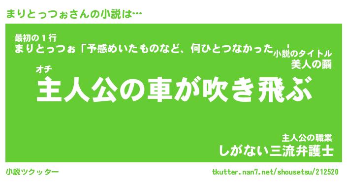 | 胡散臭い通販商品みたいなあだ名 | 『モテモテ間違いなしブレスレット…その名も「まりとっつぉ」』 |