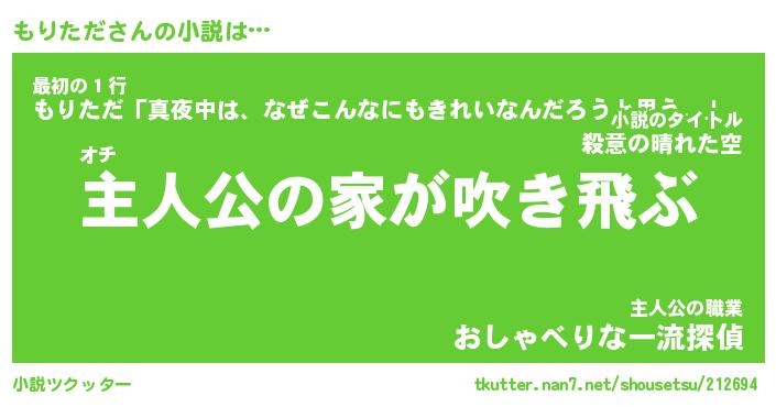 | 男性向けラノベタイトル風あだ名 | 『もりただの憂鬱』 |