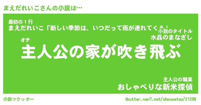 | 女子向けラノベタイトル風あだ名 | 『(仮)まえだれいこのやんごとなき事情』 |