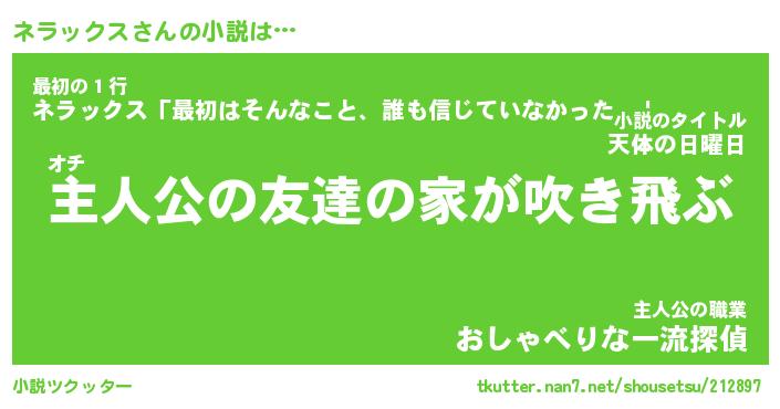 | 男性向けラノベタイトル風あだ名 | 『ネラックスの憂鬱』 |