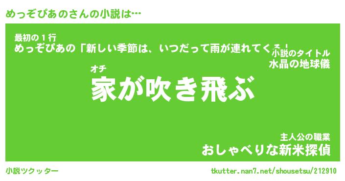| 男性向けラノベタイトル風あだ名 | 『めっぞぴあのの憂鬱』 |