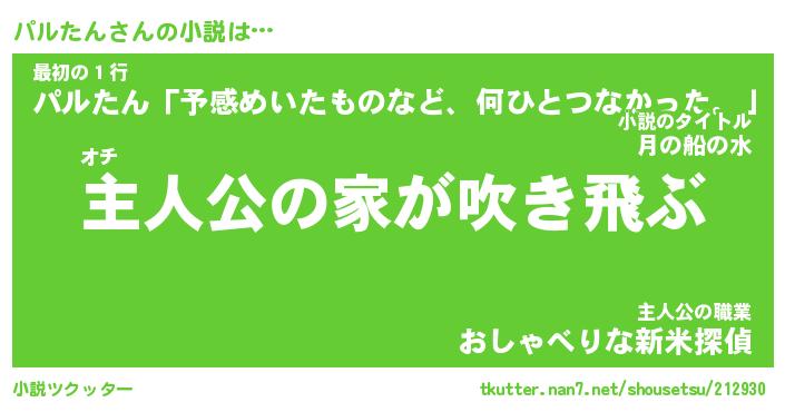 | 男性向けラノベタイトル風あだ名 | 『パルたんの憂鬱』 |