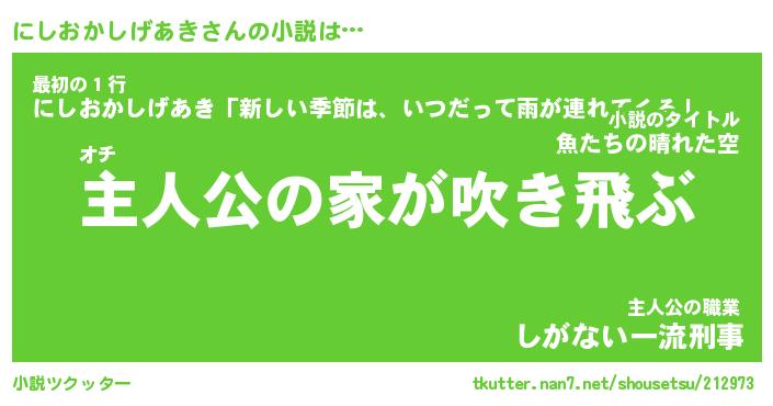 | 男性向けラノベタイトル風あだ名 | 『にしおかしげあきの憂鬱』 |