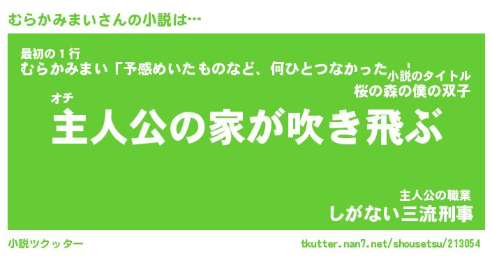 | 男性向けラノベタイトル風あだ名 | 『むらかみまいの憂鬱』 |