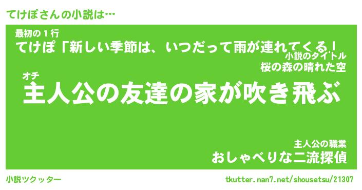 | 男性向けラノベタイトル風あだ名 | 『てけぽの憂鬱』 |