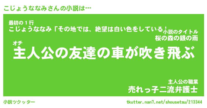 | 伝説のあだ名 | 『不死鳥のスナイパーこじょうななみ』 |