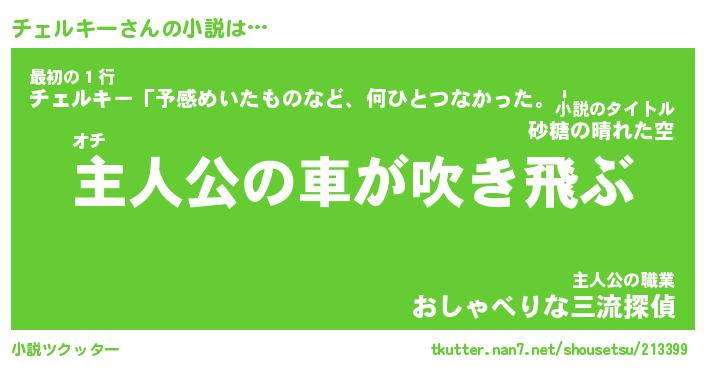| 男性向けラノベタイトル風あだ名 | 『チェルキーの憂鬱』 |