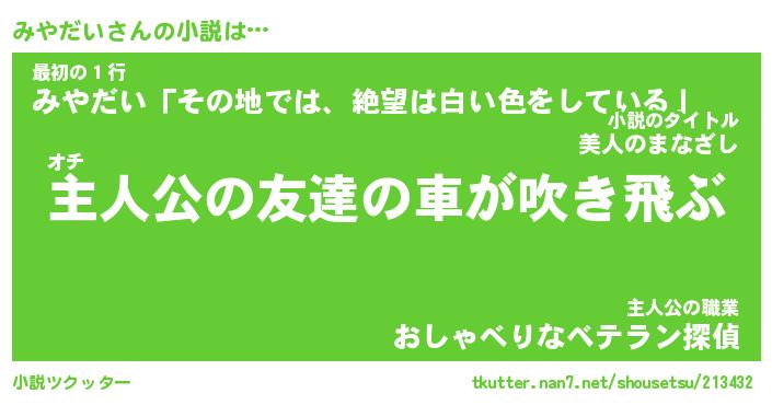 | 胡散臭い通販商品みたいなあだ名 | 『億万長者になれるブレスレット…その名も「みやだい」』 |