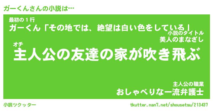 | 男性向けラノベタイトル風あだ名 | 『ガーくんの憂鬱』 |
