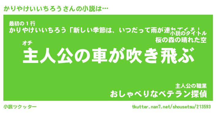 | 男性向けラノベタイトル風あだ名 | 『かりやけいいちろうの憂鬱』 |