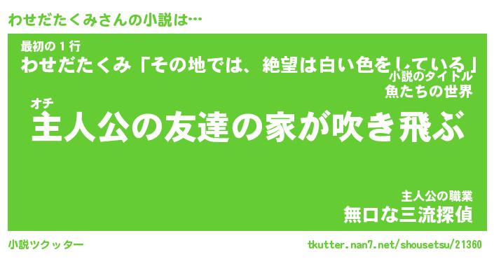 | 男性向けラノベタイトル風あだ名 | 『わせだたくみの憂鬱』 |