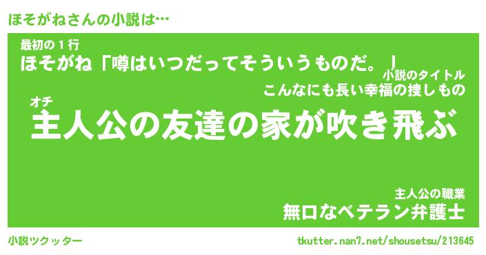 | 胡散臭い通販商品みたいなあだ名 | 『モテモテ間違いなしブレスレット…その名も「ほそがね」』 |