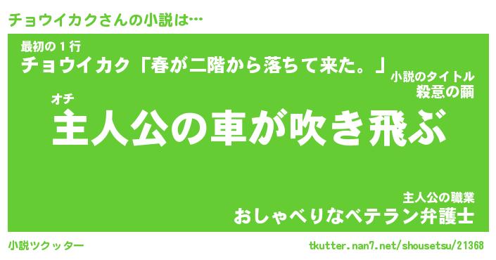 | 男性向けラノベタイトル風あだ名 | 『チョウイカクの憂鬱』 |