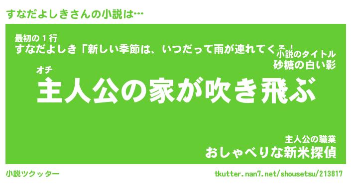 | ヘコむあだ名 | 『すなにー』『豆乳』『すなぷりん』 |