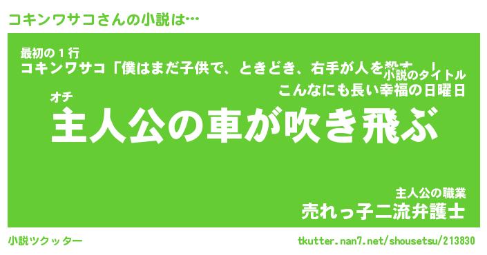 | 男性向けラノベタイトル風あだ名 | 『コキンワサコの憂鬱』 |