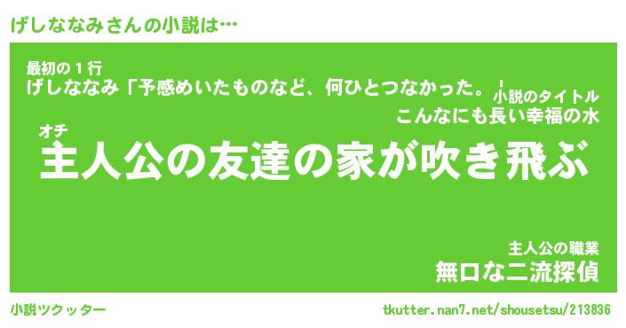 | 男性向けラノベタイトル風あだ名 | 『げしななみの憂鬱』 |