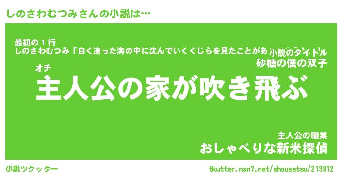 | 男性向けラノベタイトル風あだ名 | 『しのさわむつみの憂鬱』 |