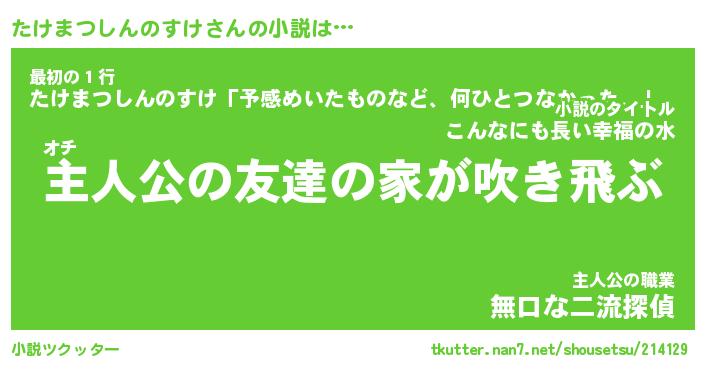 | 男性向けラノベタイトル風あだ名 | 『たけまつしんのすけの憂鬱』 |