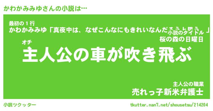 | 男性向けラノベタイトル風あだ名 | 『かわかみみゆの憂鬱』 |