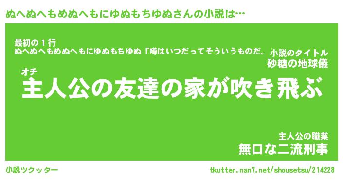 | 学校 | ぬへぬへもめぬへもにゆぬもちゆぬ校長が勤める学校の名前『国立男子ゆるゆる学園』 |