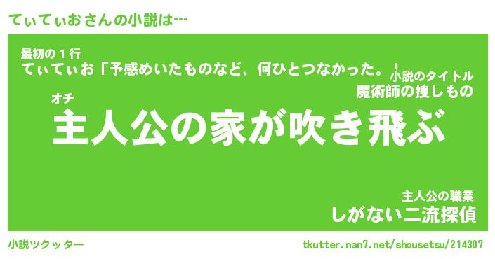 | 男性向けラノベタイトル風あだ名 | 『てぃてぃおの憂鬱』 |
