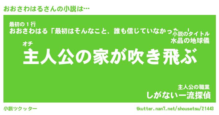 | 男性向けラノベタイトル風あだ名 | 『おおさわはるの憂鬱』 |