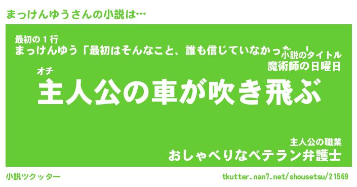 | 男性向けラノベタイトル風あだ名 | 『まっけんゆうの憂鬱』 |
