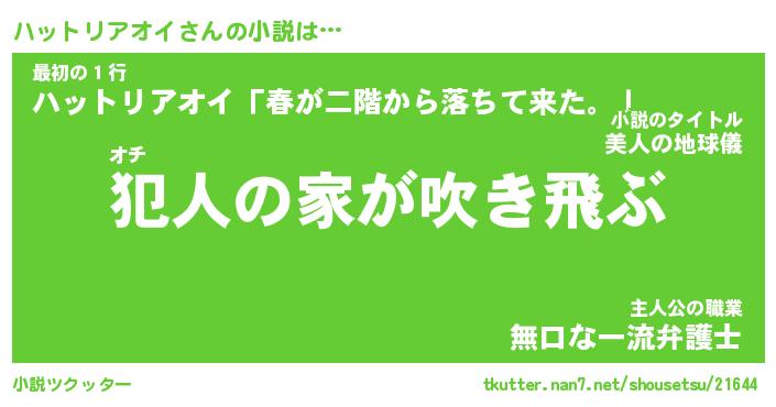 | 胡散臭い通販商品みたいなあだ名 | 『億万長者になれる水晶球…その名も「ハットリアオイ」』 |