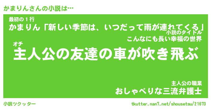 | 男性向けラノベタイトル風あだ名 | 『カマリンアートオンライン』 |